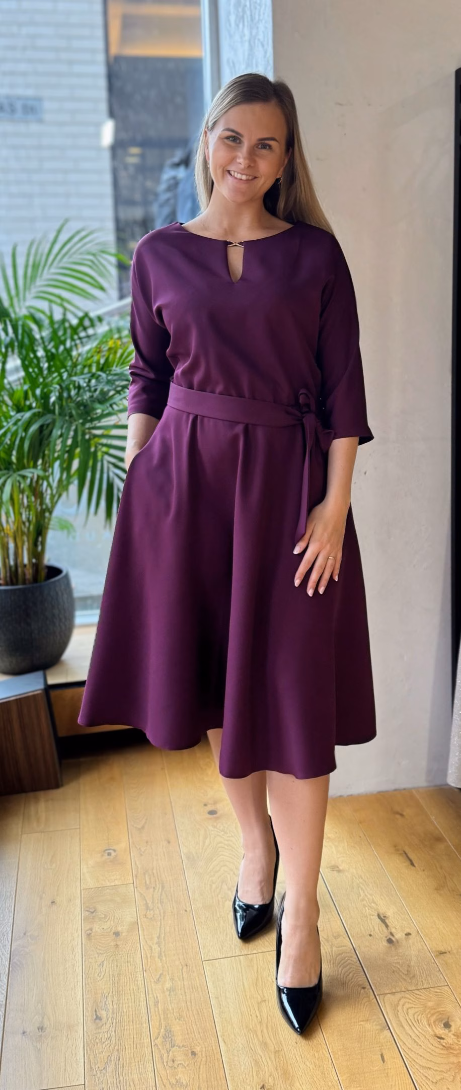 Kleidil on elastne vöökoht, kaasas seotav pihavöö.