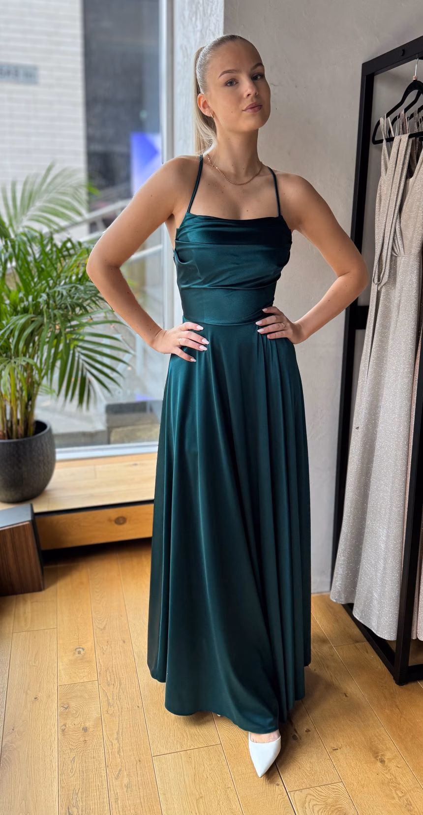 Elegantne ja voogav maksipikkuses satiinkleit. Korsetilaadne ülaosa rõhutab figuuri, samas kui avatud selg lisab sensuaalsust. Täiuslik valik lõpukleidiks, ballideks ja pidulikeks sündmusteks.